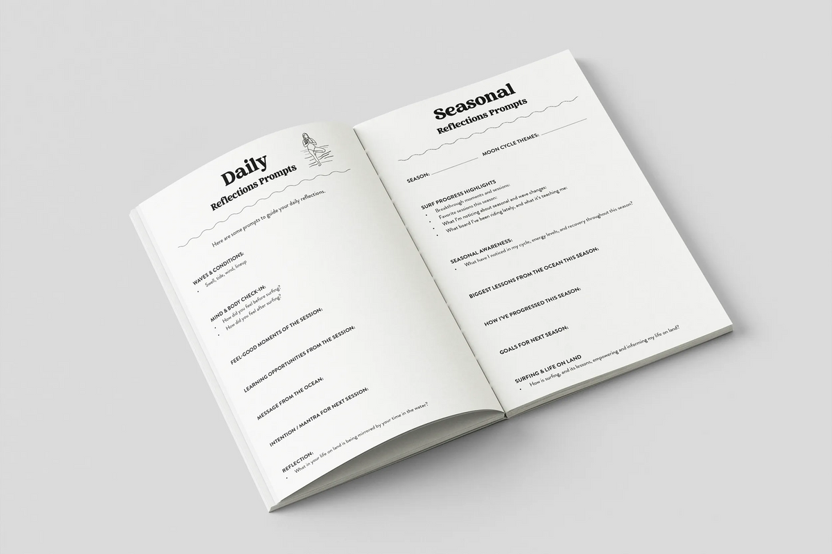 A surf journal is an opportunity to note and track your progress through the experience of land and water!