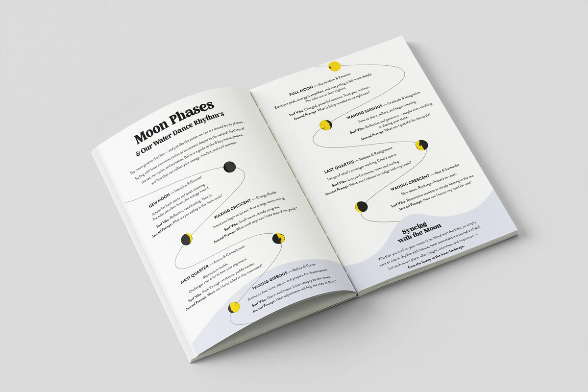 A mirror of sea and self. By tracking each special surf session and how you felt flowing through the seasonal shifts of tides, swells, and cycles within you, you have an opportunity to see yourself more fully in your experience.