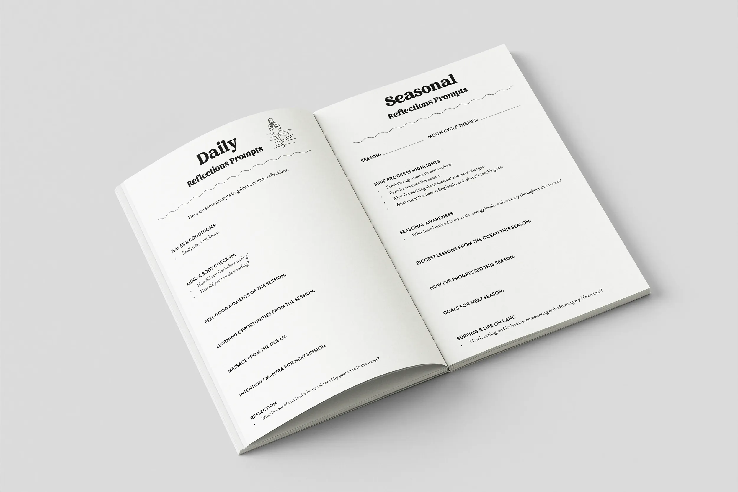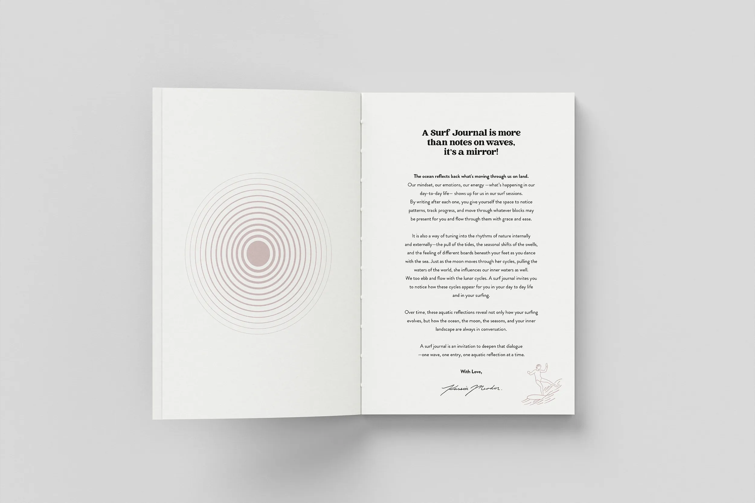 A mirror of sea and self. By tracking each special surf session and how you felt flowing through the seasonal shifts of tides, swells, and cycles within you, you have an opportunity to see yourself more fully in your experience.